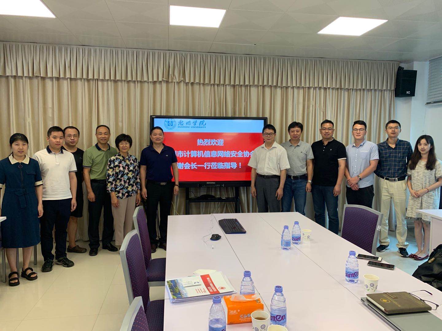 2020年6月5日上午,惠州市计算机信息网络安全协会常务副会长谢照光、副会长赵军昌、副秘书长高文康等一行到访计算机科学与工程学院,双方共同探讨在专业建设、人才培养、实践教学等方面的合作意向。学院班子成员和网络空间安全专业负责人等参加了交流。赖国明院长介绍了学院近年来在专业建设、人才培养、产教融合、实验室建设方面的情况。双方就合作模式进行了探讨。