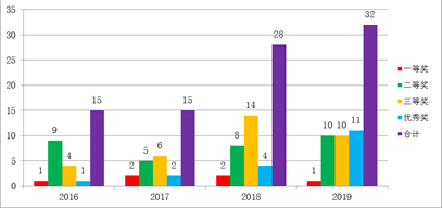 计算机科学与工程学院2016-2019年获得国家级竞赛人数统计