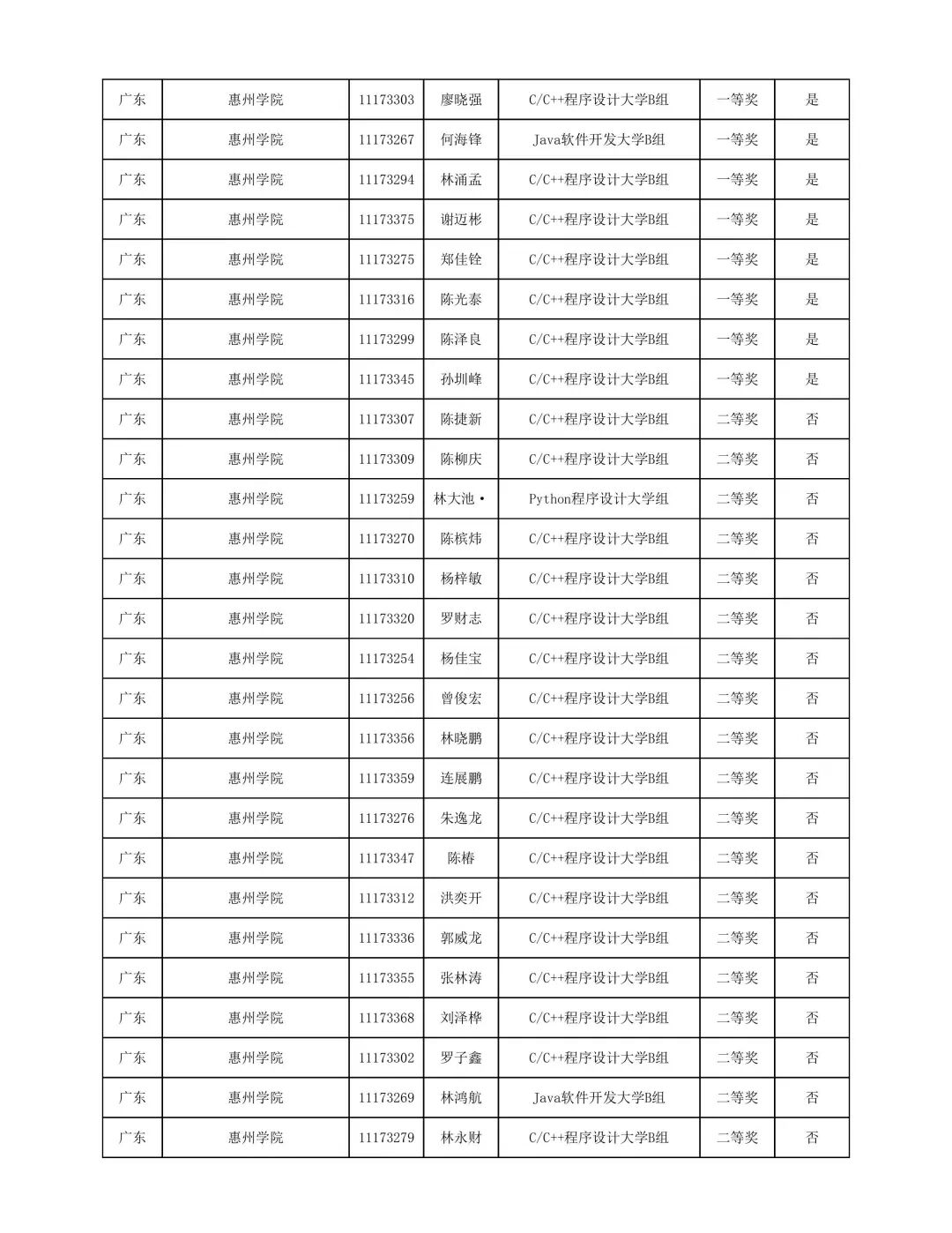 附件1:第十一届“蓝桥杯”省赛(软件类)获奖名单