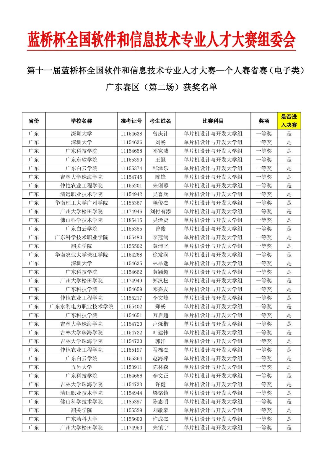 附件3:第十一届“蓝桥杯”全国总决赛参赛名单