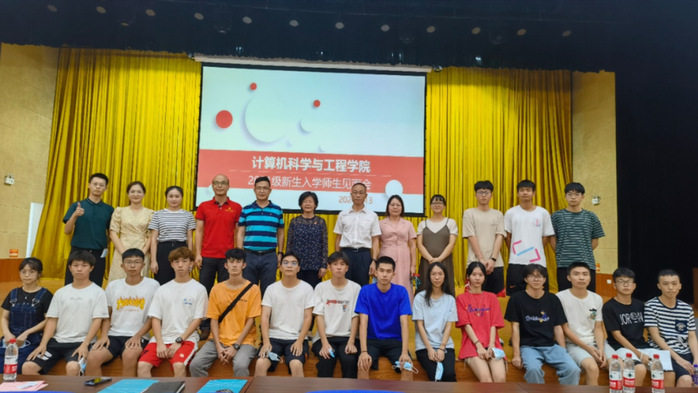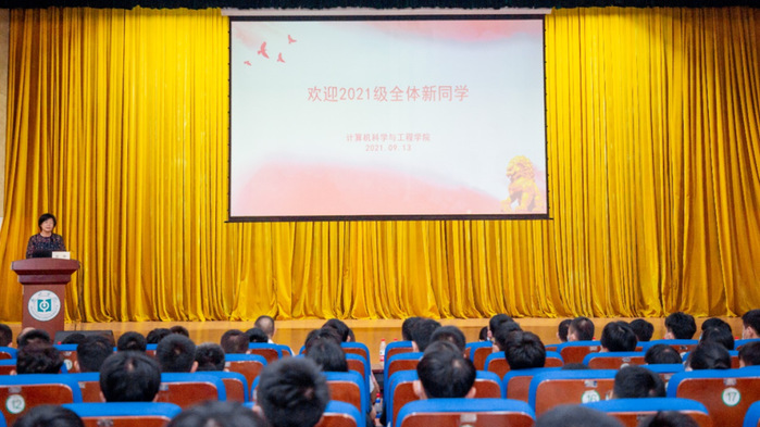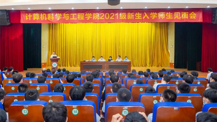 2021年9月13日上午,计算机科学与工程学院2021级新生见面会在鹅城会议厅举行。我院党总支书记陈璐、院长赖国明、党总支副书记陈贤斌、副院长汪华斌、王震、徐涛,及学院办公室、各系部负责人,全体辅导员、教务员、2021级班主任、学生团学骨干、全体2021级新生参加了本次见面会。见面会由党总支副书记陈贤斌主持。