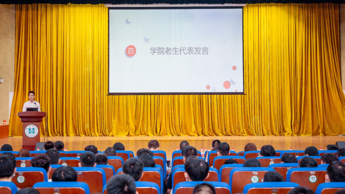 赖国明院长代表全院师生致欢迎辞。赖院长首先介绍了学院的基本情况,包括发展历程、师资队伍、国际合作办学、人才培养、学科竞赛等等方面的发展。赖院长从招生情况、培养体系解读学院今年大类招生的设想、方案及培养模式,鼓励新同学入学以后积极探索,认真了解专业情况,扎实学习专业基础课程。一年后将根据专业兴趣、个人特长、学业成绩等进行考核选拔,选择合适的专业,鼓励同学们好好利用大学四年把自己培养成为德智体美劳全面发展的高素质应用型人才。