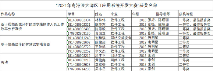 经过激烈比拼,由计算机科学与工程学院教师张振、陈珊珊指导的作品“基于视频图像分析的流水线操作人员工作效率分析系统”荣获大赛一等奖,索剑指导的作品“嗨动”和唐明星指导的作品“情感陪伴的智慧宠物喂食器”荣获大赛二等奖。会上还颁发了最佳创新奖、最佳创意奖、最佳应用奖、最佳报告奖、最佳质量奖以及最佳人气奖,我院教师张振、陈珊珊指导的作品“基于视频图像分析的流水线操作人员工作效率分析系统”荣获最佳报告奖。