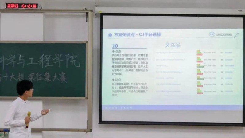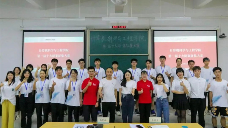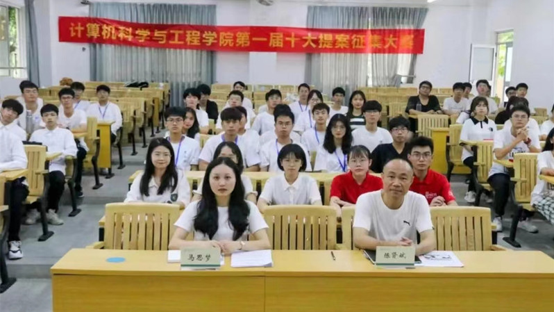 2022年春季学期期末,计算机科学与工程学院第一届十大提案征集大赛决赛在旭日楼108顺利举行。出席本次决赛的有学院党总支副书记陈贤斌、学生会指导老师马思梦,同时邀请校学生会代表及学院高级部成员担任评委。