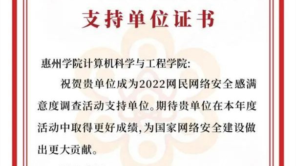 据悉,当前我国网民规模超过10.32亿,互联网普及率达到73%。向网民呈现什么,向社会反映什么,是每年网民网络安全感满意度调查活动的必答题。与亿万网民同心而行,与国家网络安全同向而进,是网民网络安全感满意度调查活动的宗旨与初衷。计算机科学与工程学院一直以来重视网络安全工作,积极参与省市网络安全相关工作。2020年12月,与中共惠州市委网信办共同举办了2020年惠州市网络与信息安全应急演练。2021年至今先后参加了惠州市护网攻防演练、仲恺高新区网络攻防渗透演练、惠东县网络攻防渗透演练等活动。自2021年与惠州市计算机信息网络安全协会党建共建以来,双方就社会服务、资源共享等方面不断深入合作。