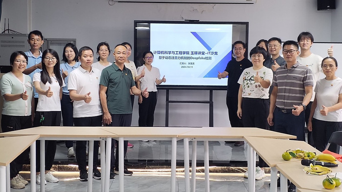 20241011日,计算机科学与工程学院在北苑社区学生活动室举办了一场IT沙龙,计算机科学与工程学院2024年国家自然科学基金青年基金获得者张玉兰博士为师生们带来了题为基于动态注意力机制的Deepfake检测的专题报告。学院副院长谢中华、副院长张晓欢、副院长谢中华、党委副书记陈贤斌和学院教工各党支部代表、网络空间安全全体教师以及部分学生参加了此次讲座,讲座由副院长谢中华博士主持。