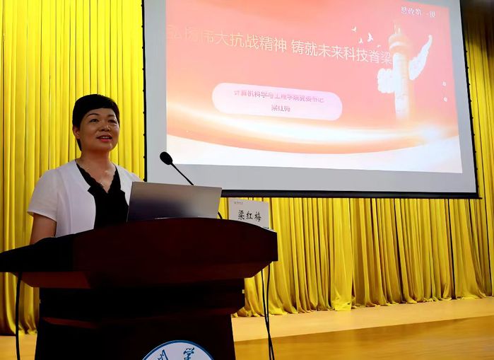 学院党委书记梁红梅为2025级本科和研究生新生讲授了题为《弘扬伟大抗战精神,铸就未来科技脊梁》的思政第一课。她指出,在抗日战争胜利暨世界反法西斯战争胜利80周年阅兵仪式中首次亮相的网络空间部队方队和信息支援部队方队,标志着我国安全防线已全面延伸至数字空间。围绕“新时代计科人如何肩负强国使命”这一命题,她引导同学们从“我身处何处”“我能成为谁”“我为何学习”“现在如何做”四个维度深入思考,并介绍了学院“一二三四”育人工作思路及多元化成长平台。最后,她对新生提出五点希望:用卓越品格,为梦想扬帆;用远大理想,为梦想定向;用丰富学识,为梦想筑基;用实干行动,为梦想铺路;用纪律安全,为梦想护航。