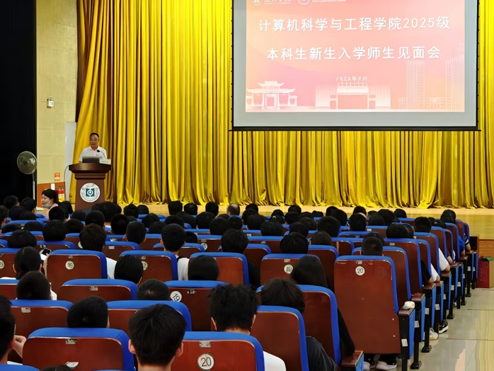 9月17日下午,计算机科学与工程学院2025级本科生新生入学师生见面会于鹅城音乐厅举行。鸿蒙社区组织深鸿会发起人李传钊先生受邀出席,并作专业导学报告。学院班子成员、系部办主任、辅导员、教务员、实验员、2025级新生班主任及525名本科生新生参加此次师生见面会。见面会由学院党委副书记陈贤斌主持。