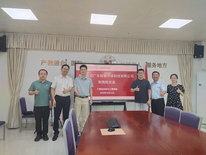 10月16日上午,广东榕智环球科技有限公司总经理陈光辉、运营总监林丰平和商务总监(马来西亚)Tham Yong Gong一行莅临计算机科学与工程学院交流,学院院长王震、网络系主任关兵和副主任陈泽虹参加了座谈。
