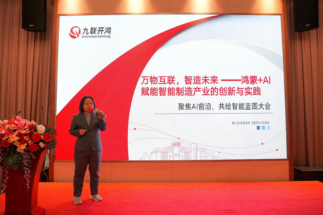 广东九联开鸿科技发展有限公司CEO钟义秀以“万物互联,智造未来——鸿蒙+AI赋能智能制造产业的创新与实践”为题,以鸿蒙+AI的双核驱动破解传统制造的连接、数据与交互难题,实现从单点智能到全域协同的跨越,向我们描绘了一个中国制造自主可控的工业蓝图。